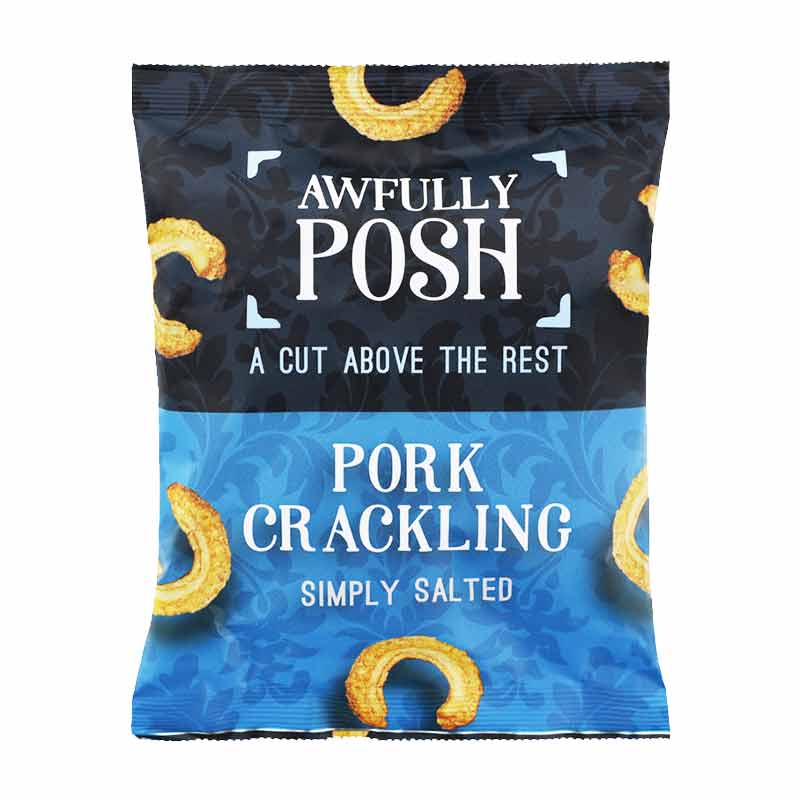 Awfully Posh Pork Crackling Simply Salted 40g offers a classic savoury snack made from perfectly cooked pork rind and lightly seasoned with simple sea salt. Expertly prepared for an irresistible crunch, this premium snack delivers rich flavour and satisfying texture in every bite.