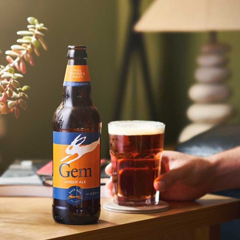 Bath Gem Ale is a refreshing brew with an ABV of 4.8%. This golden ale features a balanced blend of malt and hops, delivering a smooth, slightly fruity flavour profile complemented by a subtle bitterness. Its crisp finish makes it an ideal choice for any occasion, whether enjoyed on its own or paired with a variety of foods. Perfect for those who appreciate quality craft beer!