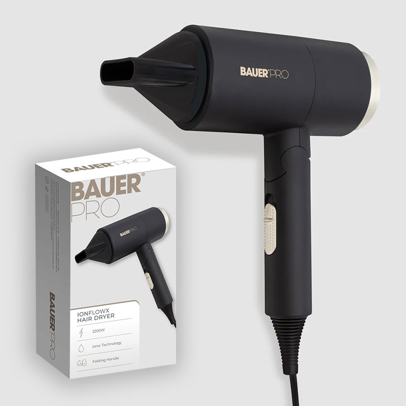 The Bauer ION Pro FlowX Hair Dryer 2200W delivers fast, powerful drying with advanced ionic technology for smoother, shinier results. Designed for professional performance at home, it features multiple heat and speed settings plus a cool shot for long lasting style. Reliable, efficient, and perfect for everyday styling.