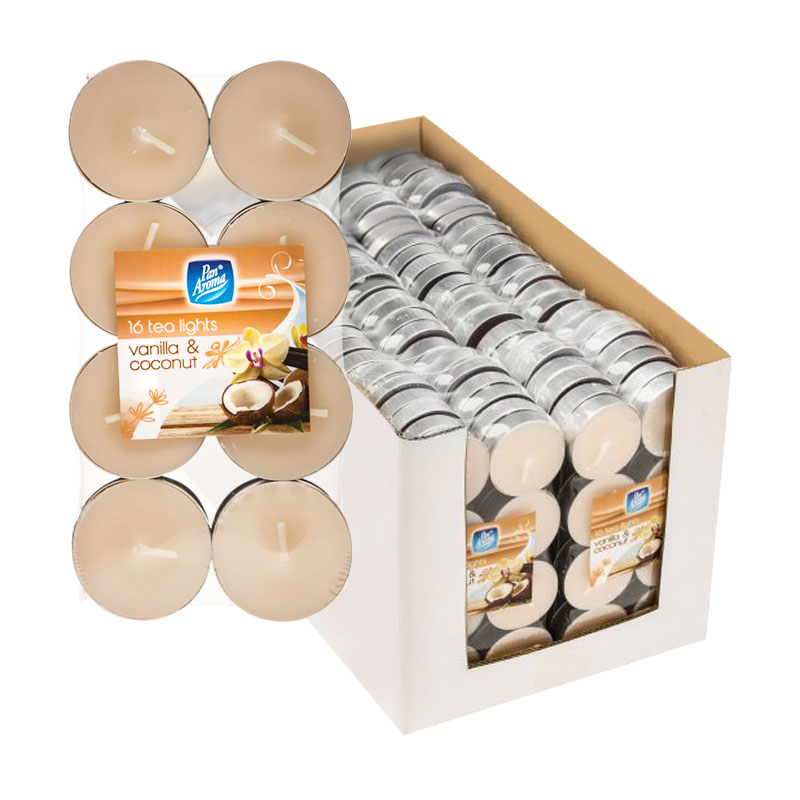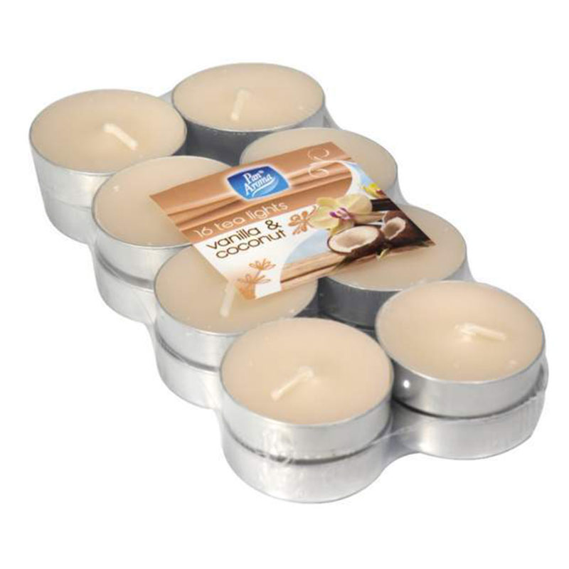 Experience the warm glow and delightful fragrance of our tea lights, infused with the soothing scents of vanilla and coconut. Perfect for creating a cosy atmosphere, these candles are ideal for intimate gatherings, relaxing evenings, or enhancing your home decor. Each candle burns evenly and brightly, providing a long-lasting, inviting ambiance that adds a touch of elegance to any setting. Enjoy the perfect blend of comfort and style with these charming tea lights.
