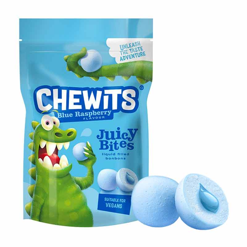 Chewits Juicy Bites Blue Raspberry 115g deliver a burst of fruity fun in every chewy square. Packed with vibrant blue raspberry flavour, these bite-sized sweets are soft, chewy, and perfect for sharing or snacking on the go.