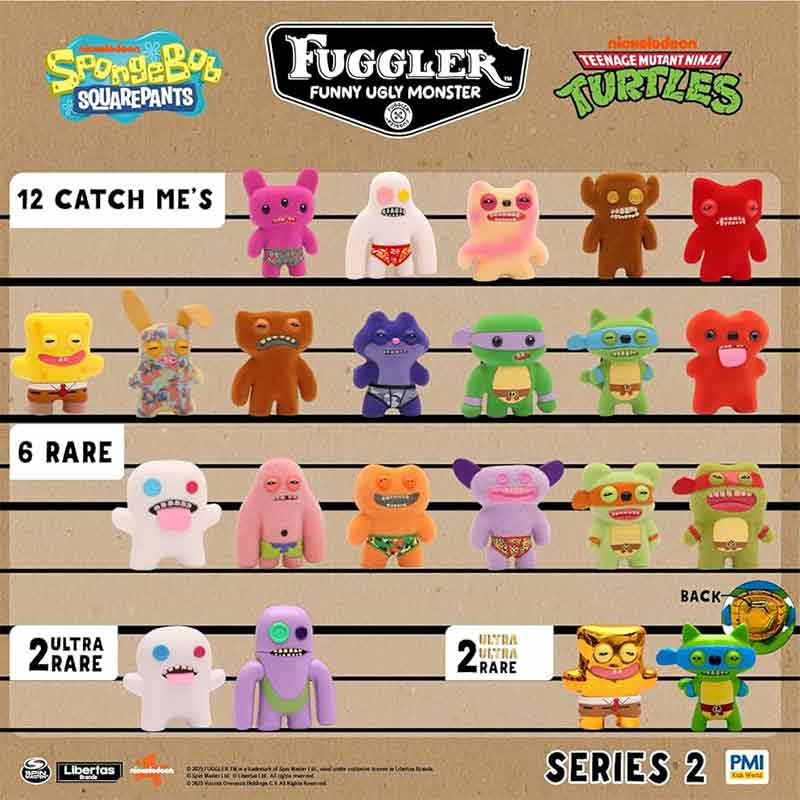 Fuggler Collectible Figures in Blind Bags are quirky and fun toys that surprise and delight with each reveal. Each blind bag contains one figure from the Series 2 Nickelodeon Teenage Mutant Ninja Turtles and Spongebob Squarepants edition. Collect all your favorite characters with unique creepy cute designs and expressive features. Each display contains 24 blind bags, but the main focus is on the individual figures, making them perfect for collectors and fans alike. The ultimate figure to find is the rare Golden Spongebob, a standout in the collection. Fuggler figures are perfect for play display or gifting and offer a fun surprise element every time you open a blind bag.