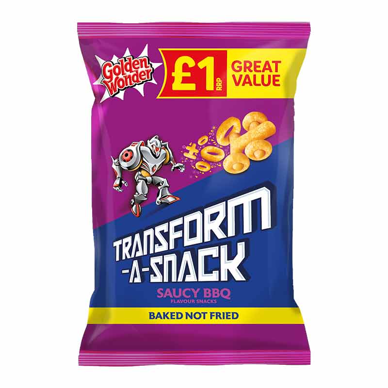 Enjoy the savoury taste of Golden Wonder Transform-A-Snack in Saucy BBQ flavour. Perfect for snacking anytime, these crispy treats deliver a delicious burst of flavour in every bite!