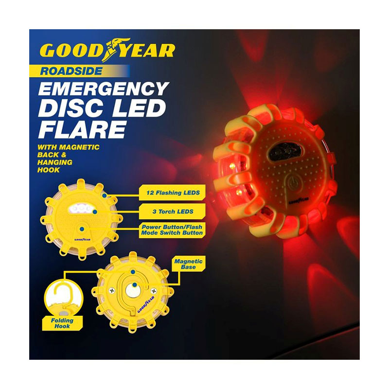 Stay visible and protected with the Goodyear Emergency Disc Flare. This compact high intensity LED safety light ensures you are clearly seen during breakdowns emergencies or outdoor activities.