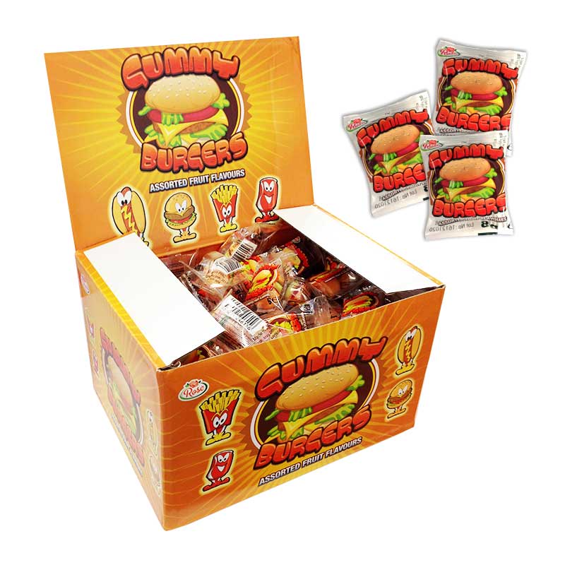 Delight in the fun and flavour of Gummy Burgers! Each chewy treat features a vibrant, colourful design that resembles a classic burger, making them a playful snack for all ages. Perfect for parties, candy buffets, or just a sweet indulgence, these gummies combine a unique taste with a whimsical appearance. Enjoy a burst of fruity flavours in every bite, and let your taste buds enjoy this delightful twist on a favourite food!