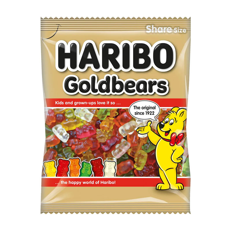 Haribo Gold Bears are a classic gummy candy loved for their fruity flavours and chewy texture. These adorable bear-shaped gummies come in a variety of colours, each offering a different taste, such as raspberry, orange, and lemon. Perfect for snacking, sharing, or adding to sweets, they bring a fun and nostalgic treat to any occasion. Enjoy the delightful bounce of these iconic candies!