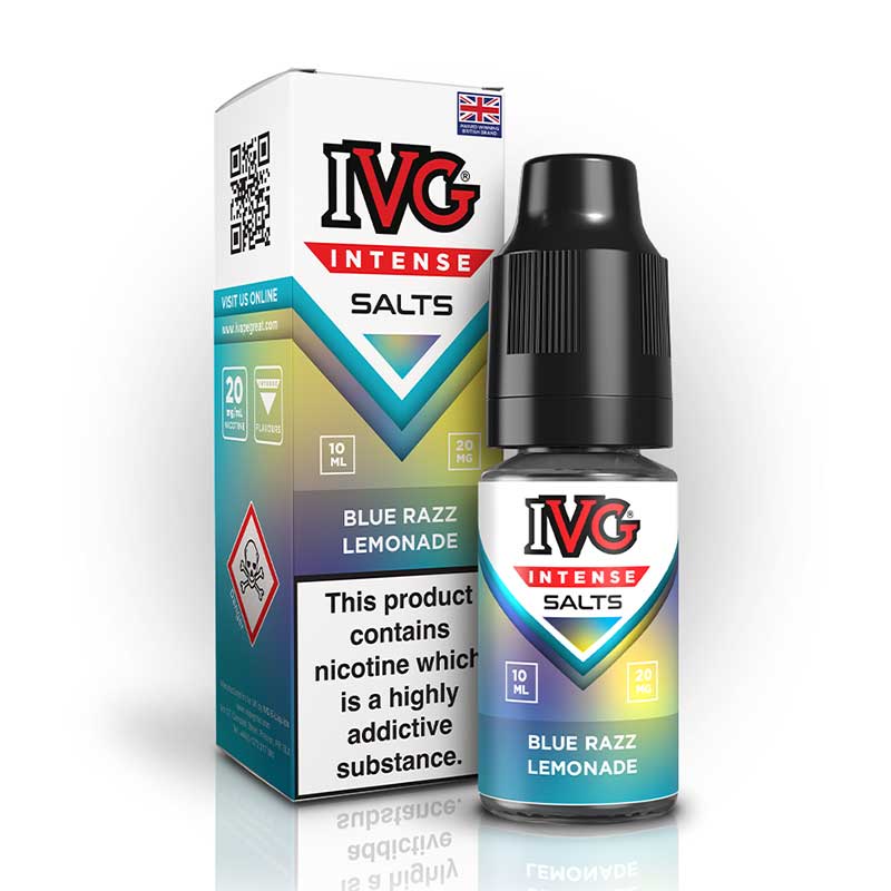 IVG Intense Salts Blue Razz Lemonade combines tangy blue raspberry with zesty lemonade for a sweet, citrusy, and refreshing flavour. Each 10ml bottle contains 10mg or 20mg nicotine salt, providing smooth, flavour-packed vapour. Sold as singles but ideally retailed in packs of 10, IVG Intense Salts are perfect for Vape Starter Kits and Pod Vape Kits. Since 2016, IVG has earned 50 international awards and the title of “Best UK Brand” for three years running, making their Intense Salts range a must-try for flavour lovers.