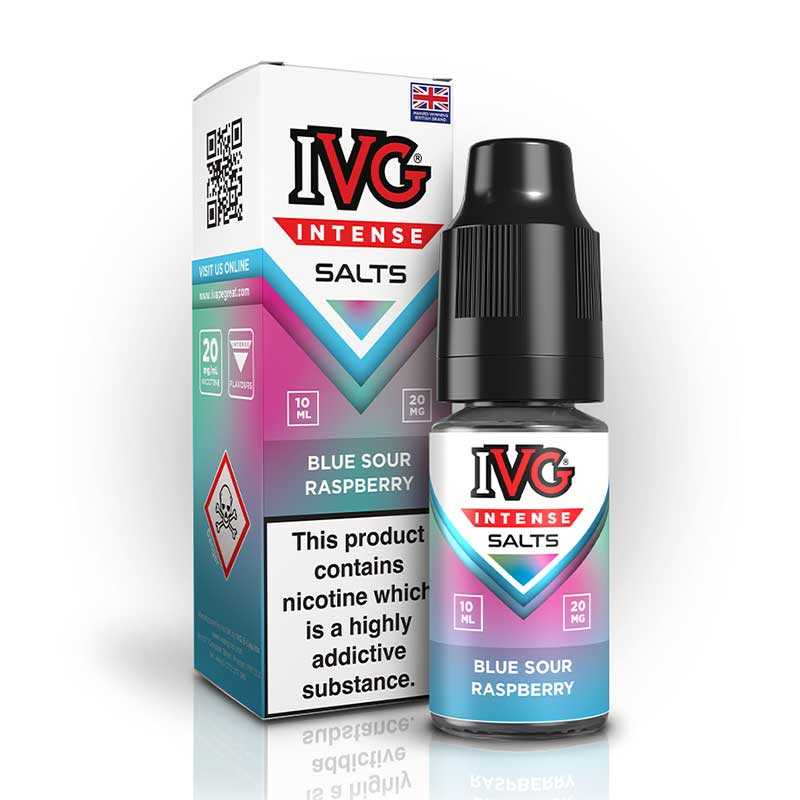 IVG Intense Salts Blue Sour Raspberry delivers a tangy, sour raspberry flavour with a bold, zesty kick. Each 10ml bottle contains 10mg or 20mg nicotine salt, providing smooth, flavour-packed vapour. Sold as singles but ideally retailed in packs of 10, IVG Intense Salts are perfect for Vape Starter Kits and Pod Vape Kits. Since 2016, IVG has earned 50 international awards and the title of “Best UK Brand” for three years running, making their Intense Salts range a must-try for flavour lovers.