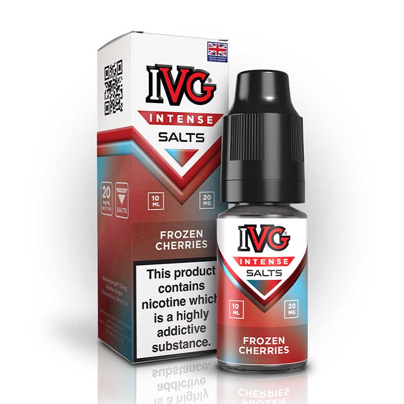 IVG Intense Salts Frozen Cherries bursts with the rich, sweet taste of ripe cherries, chilled to deliver a refreshing icy finish. Each 10ml bottle contains 20mg nicotine salt, providing smooth, flavour-packed vapour. Sold as singles but ideally retailed in packs of 10, IVG Intense Salts are perfect for Vape Starter Kits and Pod Vape Kits. Since 2016, IVG has earned 50 international awards and the title of “Best UK Brand” for three years running, making their Intense Salts range a must try for flavour lovers.