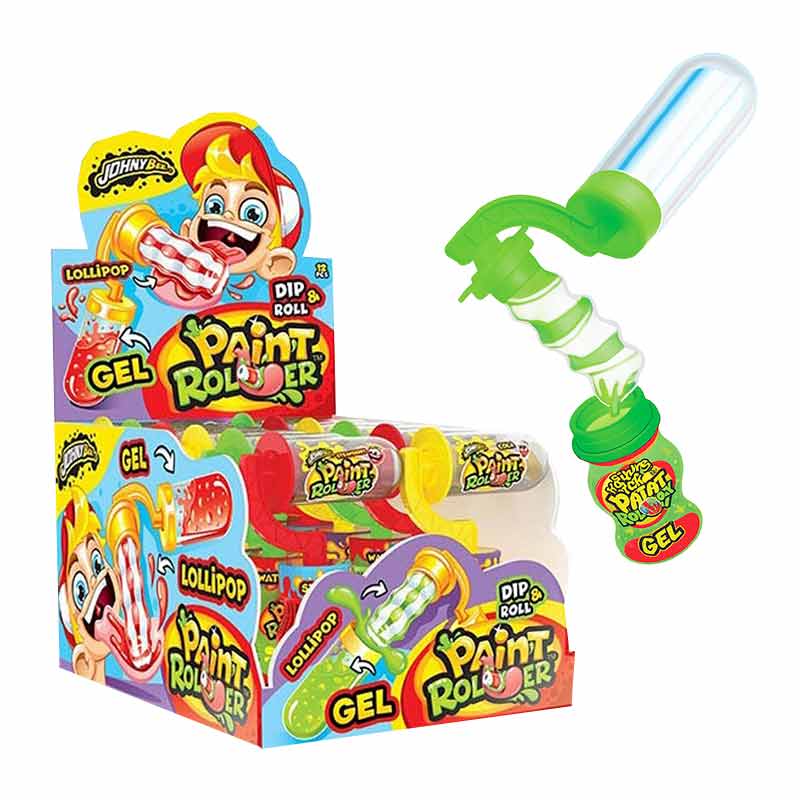 Johny Bee Paint Roller Pop 64g is a fun and interactive liquid candy that lets you roll on the flavour. Designed to look like a mini paint roller, this novelty sweet is filled with fruity liquid candy that can be applied directly onto your tongue for a burst of bold taste.