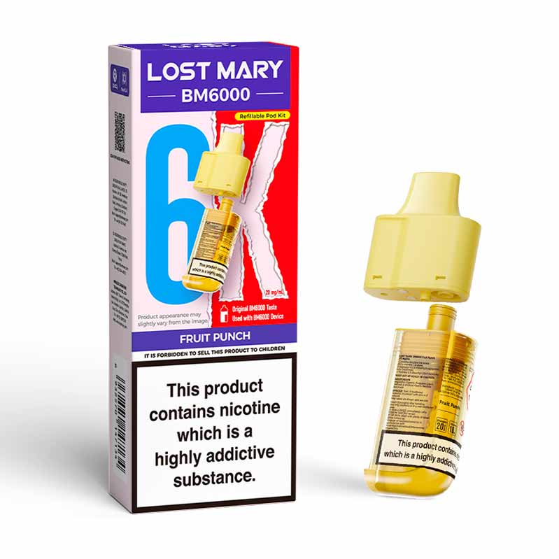 Lost Mary BM6000 Fruit Punch delivers a bold burst of tropical sweetness with a smooth, juicy blend of mixed fruits in every puff.