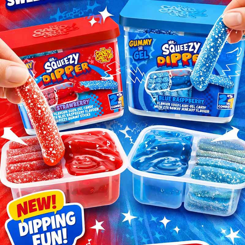 Mr Squeezy Dipper is a fun interactive sweet featuring tasty liquid candy and a dipping stick for extra flavour. Simply dip the stick into the fruity liquid for a sweet and tangy treat that kids love.
