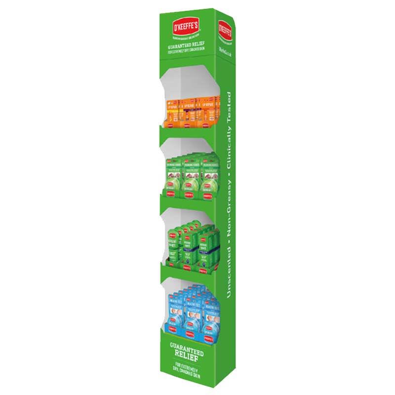Maximise visibility and sales with the O’Keeffe’s Floor Stand Display Unit. Designed for retail settings, this sturdy and attractive display showcases a range of O’Keeffe’s skincare products, keeping them organised and easily accessible for customers.