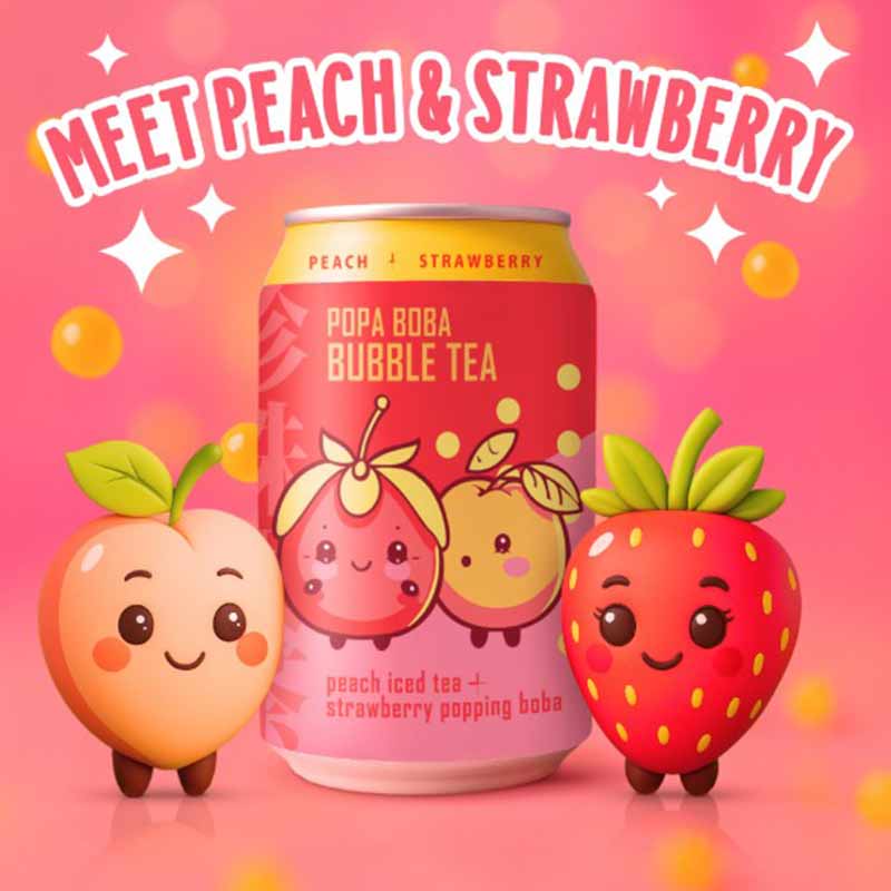Popa Boba Peach and Strawberry Bubble Tea blends juicy peach with sweet strawberry for a smooth, fruity, and refreshing drink experience.