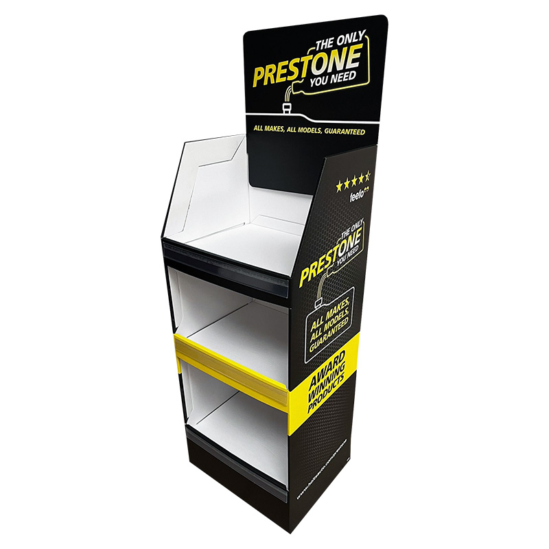 The Prestone Floor Standing Display Unit with 3 tiers is a strong, eye-catching way to showcase automotive products in-store. Designed with durability and visibility in mind, this stand features three spacious tiers to neatly organise a range of Prestone items such as coolant, screen wash, and de-icer. Its tall, sturdy construction ensures maximum product exposure while keeping stock easily accessible to customers. Ideal for garages, forecourts, and retail environments, this professional display enhances brand presence and keeps shelves tidy and appealing.