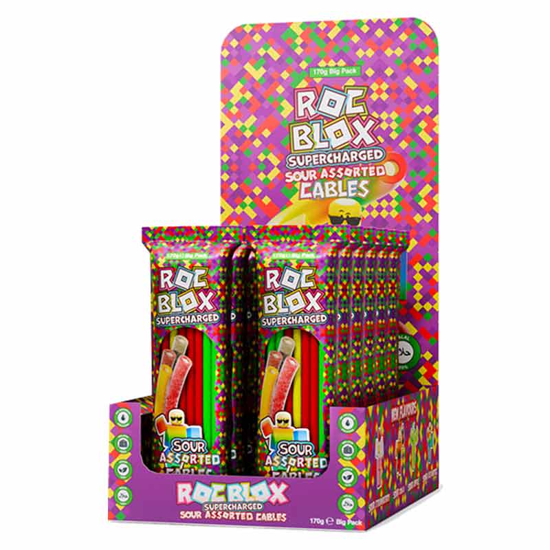 Roc Blox Supercharged Sour Assorted Cables 170g deliver a burst of fruity flavour in every bite. Each pack includes a colourful mix of chewy, tangy cables coated in a sour sugar finish for the perfect balance of sweet and zingy. Fun, bold, and full of flavour, these treats are loved by all ages and make a great addition to any sweet collection. Sold in a display of 12 packs, they’re ideal for retail counters, sweet shops, and impulse buy displays, adding a bright and tasty option to your confectionery range.