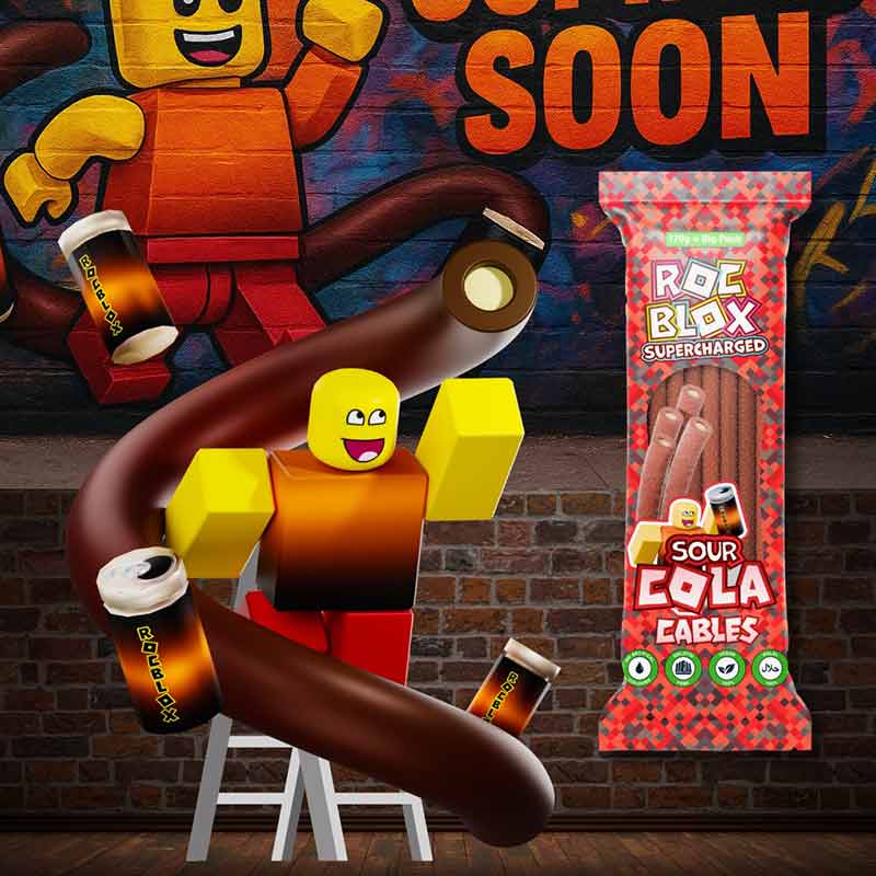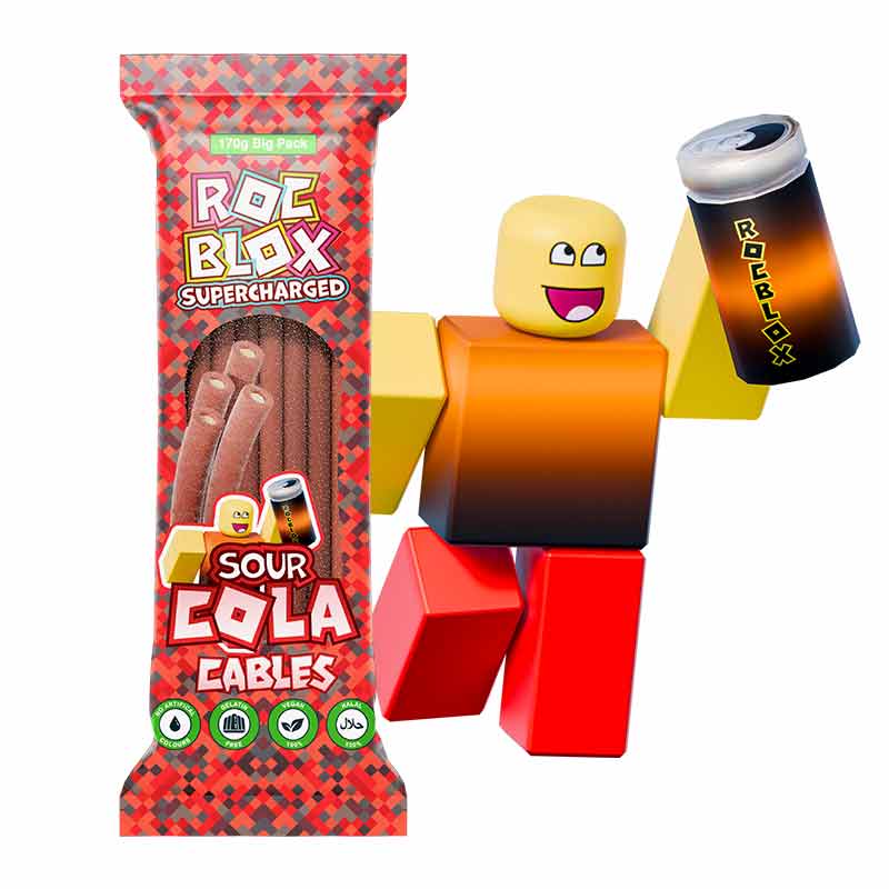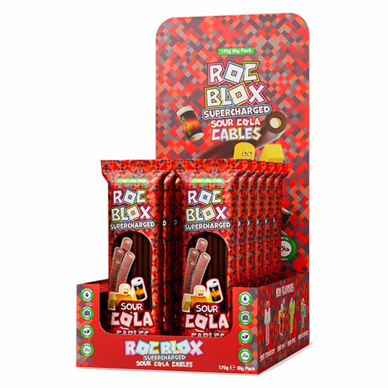 Roc Blox Supercharged Sour Cola Cables 170g bring a fizzy cola twist to classic chewy sweets. Bursting with bold sour flavour and a nostalgic cola taste, these long, soft cables are a fun and tasty treat for sweet fans of all ages. Their tangy coating and chewy texture make every bite exciting and full of flavour. Sold in a display of 12 packs, they’re perfect for retail counters, sweet shops, and snack displays, adding a lively, eye catching option to any confectionery selection.