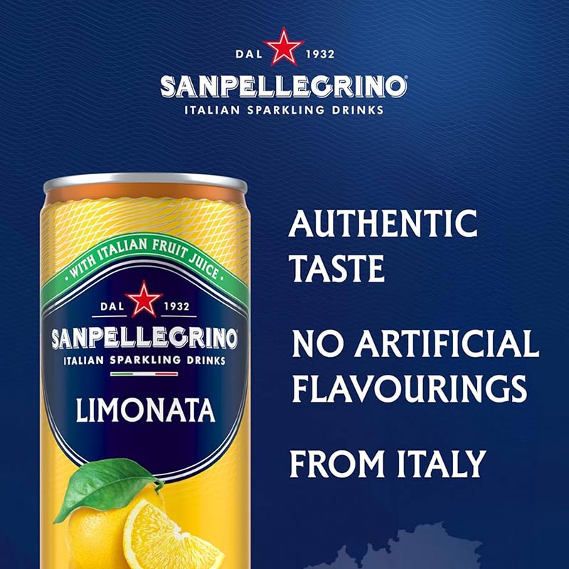 Enjoy the refreshing taste of San Pellegrino Limonata, a sparkling lemon beverage that combines vibrant citrus flavour with a bubbly finish, perfect for any occasion.