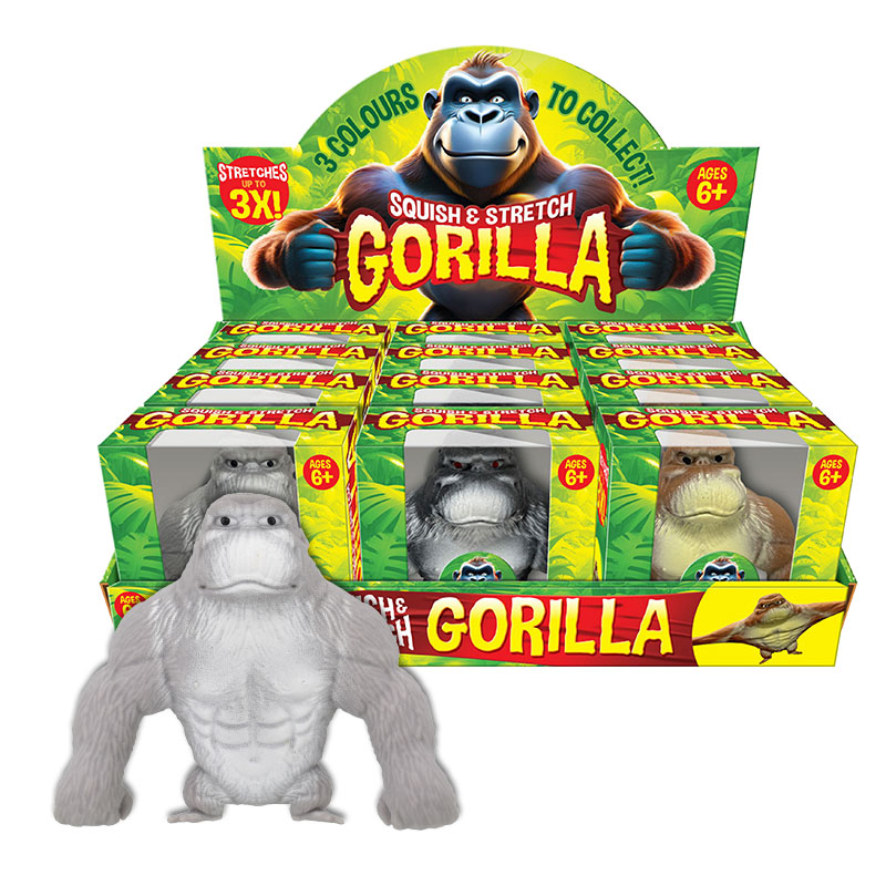 Squish and Stretch Gorilla in display of 12