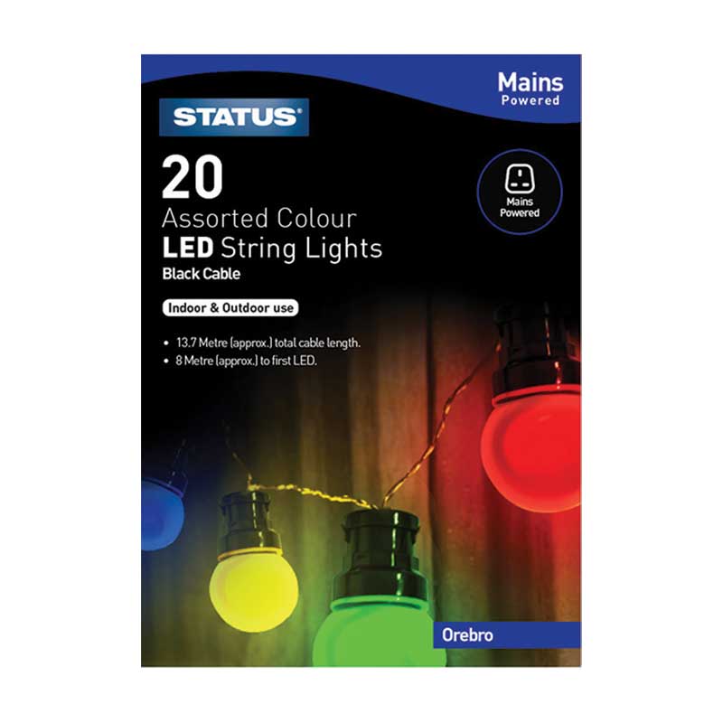 Create a festive and cheerful atmosphere with Status LED Xmas Lights. Featuring 20 multicoloured bulbs on a 13.7 metre string, these mains-powered lights are perfect for decorating your home, garden, or party space. Suitable for both indoor and outdoor use, they add a warm and colourful glow to Christmas celebrations, BBQs or any festive occasion. Easy to install and energy efficient, these lights help you spread cheer wherever they are displayed. Voltage: 220 – 240 V.