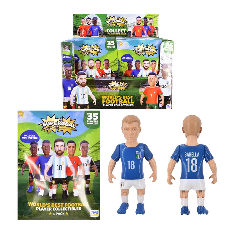 The Supergoal Mundial World Best Football Players Collectables Retail Display includes 24 blind bag action figures presented in a ready to place counter or shelf display. Each blind bag contains a football inspired action figure adding an exciting surprise element that encourages repeat engagement.