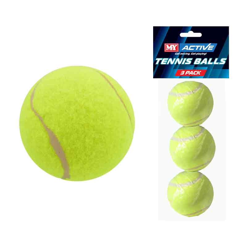 This pack of three tennis balls is perfect for players of all levels. Designed for durability and optimal performance, these balls provide excellent bounce and feel on the court. Ideal for practice or casual matches, they are made from high-quality materials that withstand wear and tear. Whether you are playing singles or doubles, this convenient pack ensures you always have a spare on hand for endless fun and competitive play.