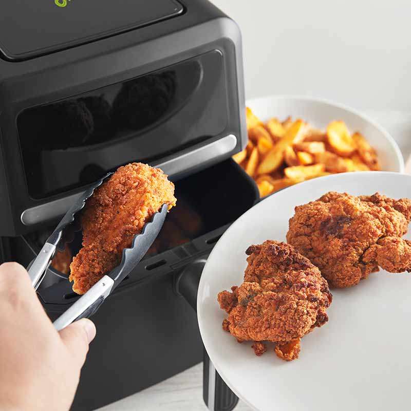 With a generous 5 litre capacity, you can prepare family sized meals or cook larger portions with ease, from crispy chips to juicy meat joints. The compact space saving design takes up less room on your countertop while still delivering powerful performance.