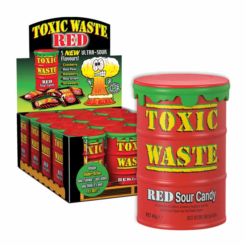 Toxic Waste Nuclear Red Drums are a thrilling candy experience, packed with intense sour flavour that turns into a sweet delight. Each drum features a unique design, resembling a hazardous waste container, adding a fun twist to your candy collection. Perfect for those who enjoy a bold taste adventure, these treats are sure to challenge your taste buds and provide a memorable snacking experience!