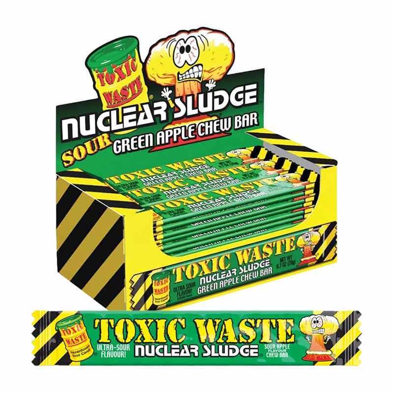 Toxic Waste Sour Apple Sludge Bars deliver an intense sour candy experience with a burst of apple flavour. Each bar is designed to challenge your taste buds with its extreme tartness, providing a thrilling treat for sour candy lovers. Perfect for sharing or enjoying on your own, these bars are a fun addition to any candy collection, bringing a playful twist to your snacking experience. Get ready for a mouth-puckering adventure!