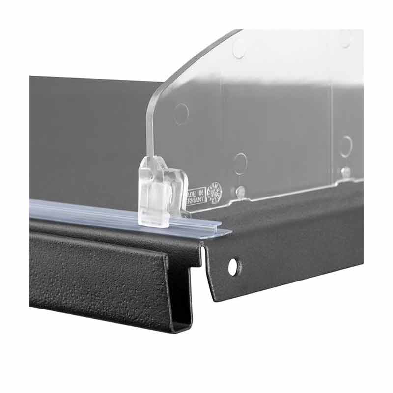 The Divider Rail “PEK” provides a simple and reliable way to attach dividers and pushers to your shelving systems. Designed for flexibility, it’s available with either magnetic or adhesive tape, allowing it to be fixed securely to almost any shelf surface without the need for tools. For the best results, ensure surfaces are clean and free from dust or grease before application, and apply adhesive at room temperature for lasting hold.