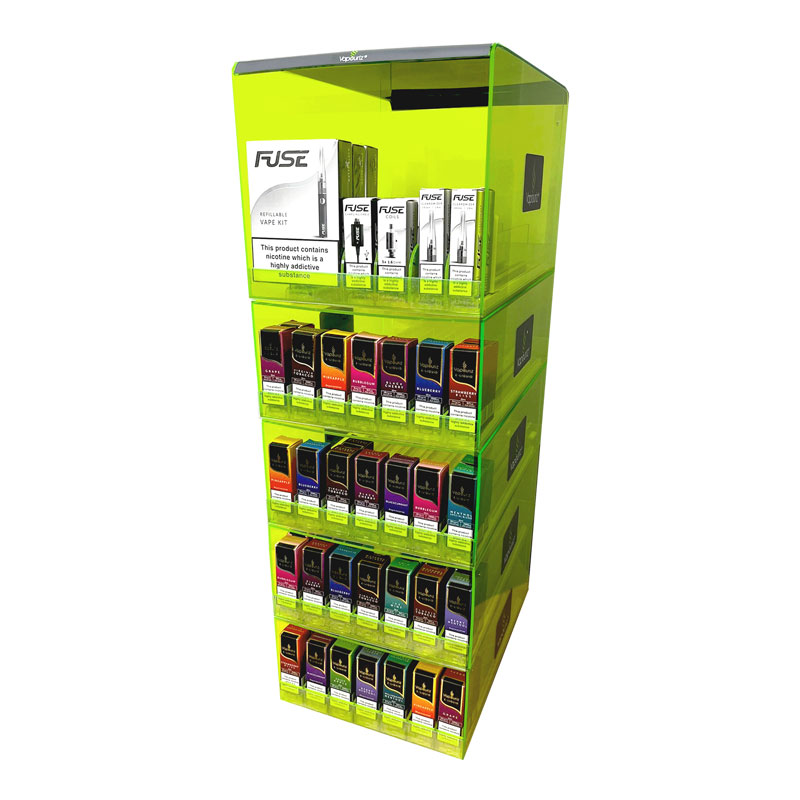 The Vapouriz 5 Tier Acrylic CDU is designed to make your products stand out while keeping your counter perfectly organised. Its sturdy clear acrylic build offers excellent visibility from every angle, giving customers an easy view of your full range. Each tier is spaced for comfortable browsing, while the built in thirty three pushers keep stock neat, tidy and always front facing for a polished professional look.